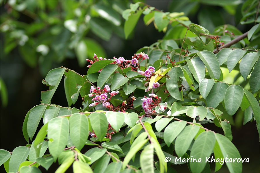 Карамбола – хорошо известное плодовое растение, распространённое во всех странах Юго-Восточной Азии. Это невысокое дерево, цветущее ароматными розовыми цветами, собранными в метелки. Плод карамболы, характерной формы, с четырьмя или пятью продольными рёбрами, в поперечном разрезе напоминает звезду. Богатый витамином С и кальцием, «звёздный фрукт» нашёл широкое применение в кулинарии. Недозрелые плоды маринуют, засаливают, используют в салатах. Спелые, ярко-жёлтые, едят свежими, сушат, используют для приготовления консервов, соков, варенья.