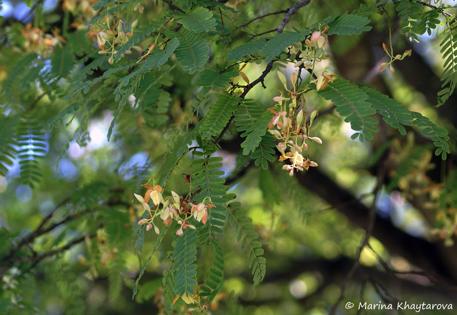 Это медленнорастущее, в большинстве случаев вечнозелёное дерево, вырастающее при благоприятных условиях до 30 метров высотой, с гибкими ветвями и тёмно-серой, грубой корой. Листья зелёные, сложные, парноперистые, до 20 см длиной. Каждый лист состоит из 10-18 пар мелких (до 2 см), продолговатых листочков. Цветки мелкие, жёлтые с красными прожилками, собраны в небольшие кисти. Основной период цветения приходится, обычно, на зимние месяцы.